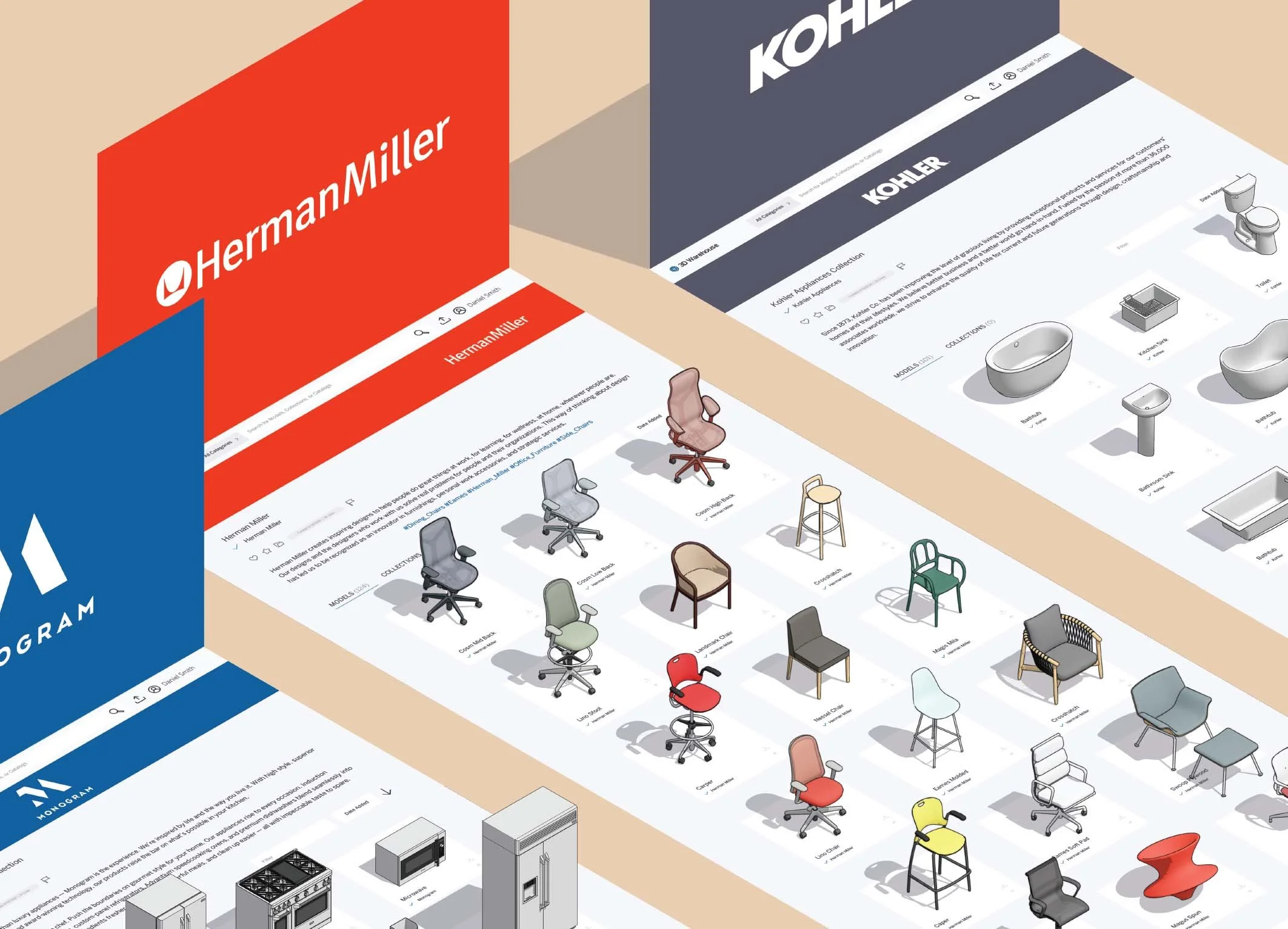 With dedicated catalogs in platforms like SketchUp 3D Warehouse, your products will be accessible to over 40 million people around the World, including industry professionals such as Architects and Interior designers.